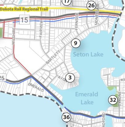 Carlson Park is located on the Mound Parks & Amenities Map as map location 9. It is located south off of Barlett Boulevard, a bit northeast of Avon Drive.